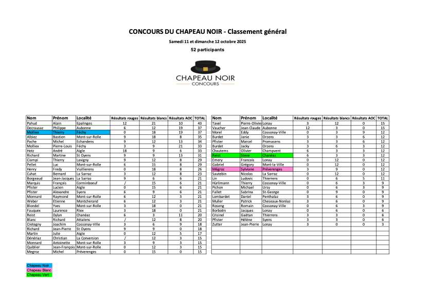 Voici les résultats de l’édition 2025 des concours du Chapeau Noir :